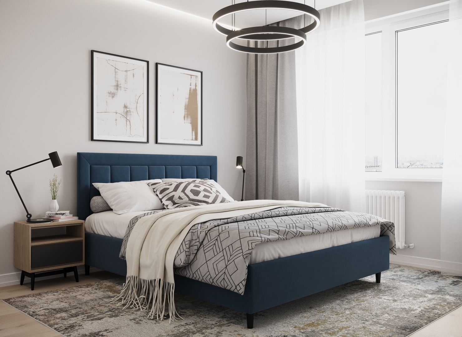 Стежка помещена в центр изголовья и обрамлена, словно картина. Объемные царги завершают цельную фигуру кровати и становятся гармоничным дополнением ее образа.