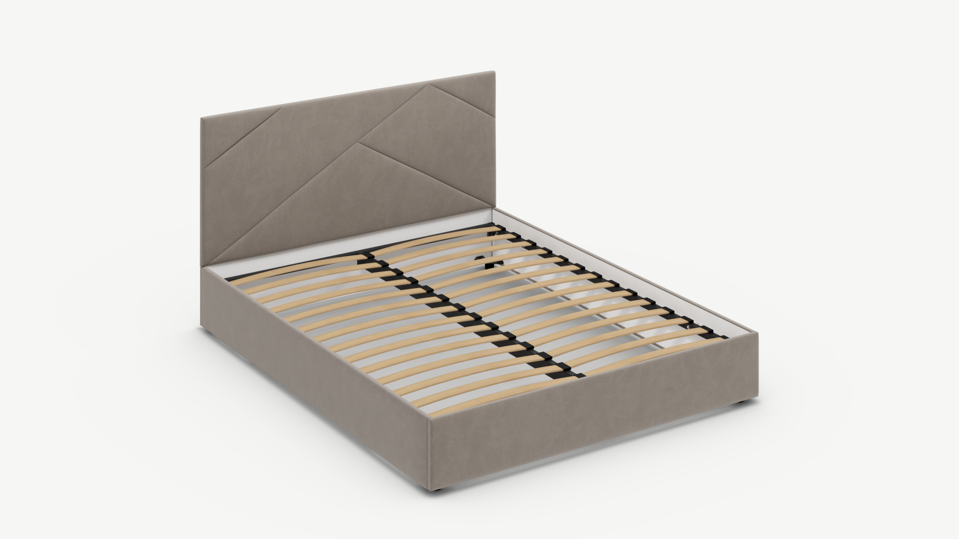 MOON FAMILY 1257 привлекает внимание оригинальным исполнением: широкие полосы ткани эффектно пересекают периметр изголовья, создавая на нем графический орнамент. Элегантным и практичным акцентом служат скрытые карманы, расположенные по его углам. Лаконичные формы объемных царг создают единый гармоничный образ и фокусируют внимание на центральном текстурном элементе кровати.
