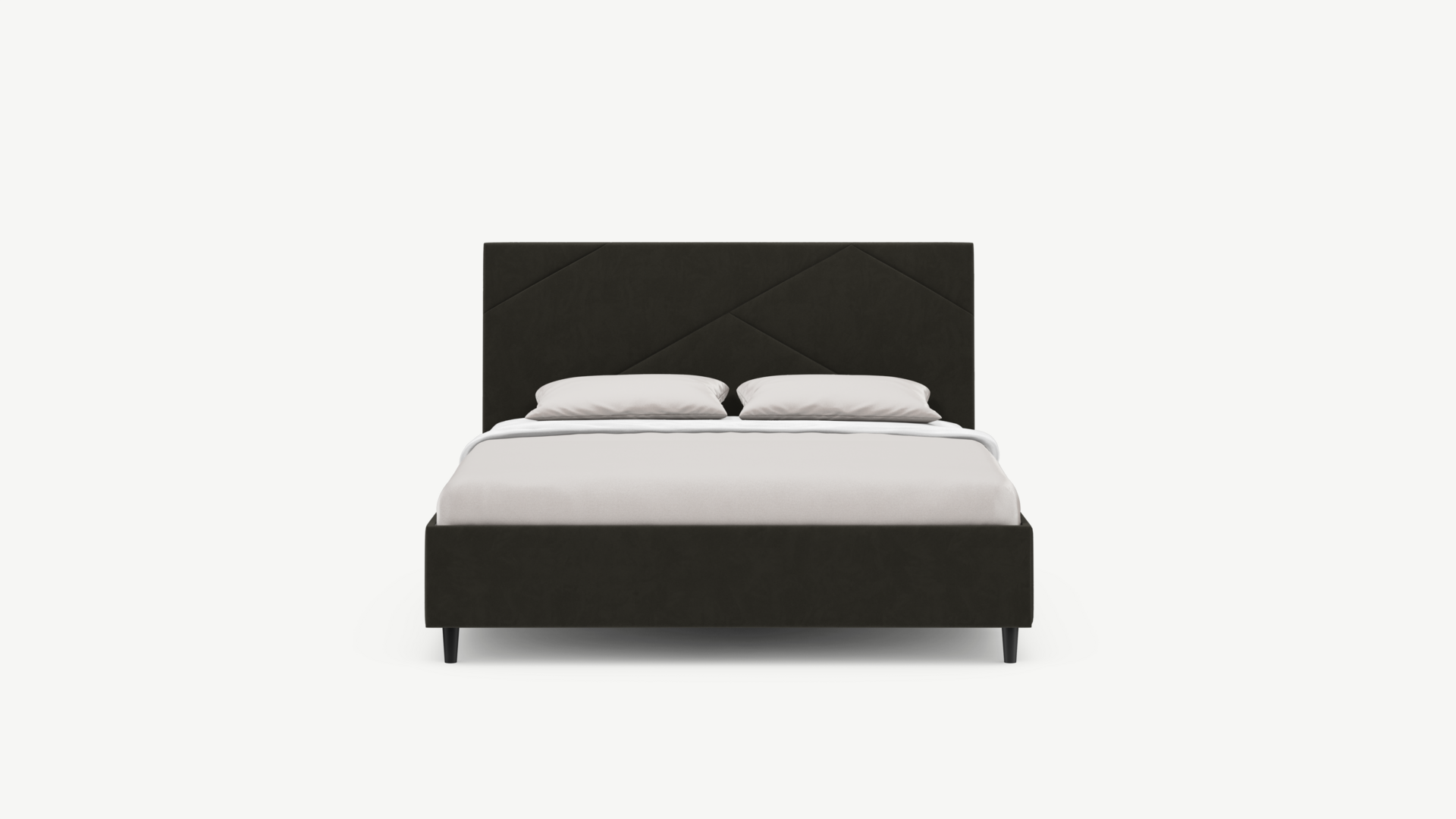 Элегантным и практичным акцентом служат скрытые карманы, расположенные по его углам. Лаконичные формы объемных царг создают единый гармоничный образ и фокусируют внимание на центральном текстурном элементе кровати.
