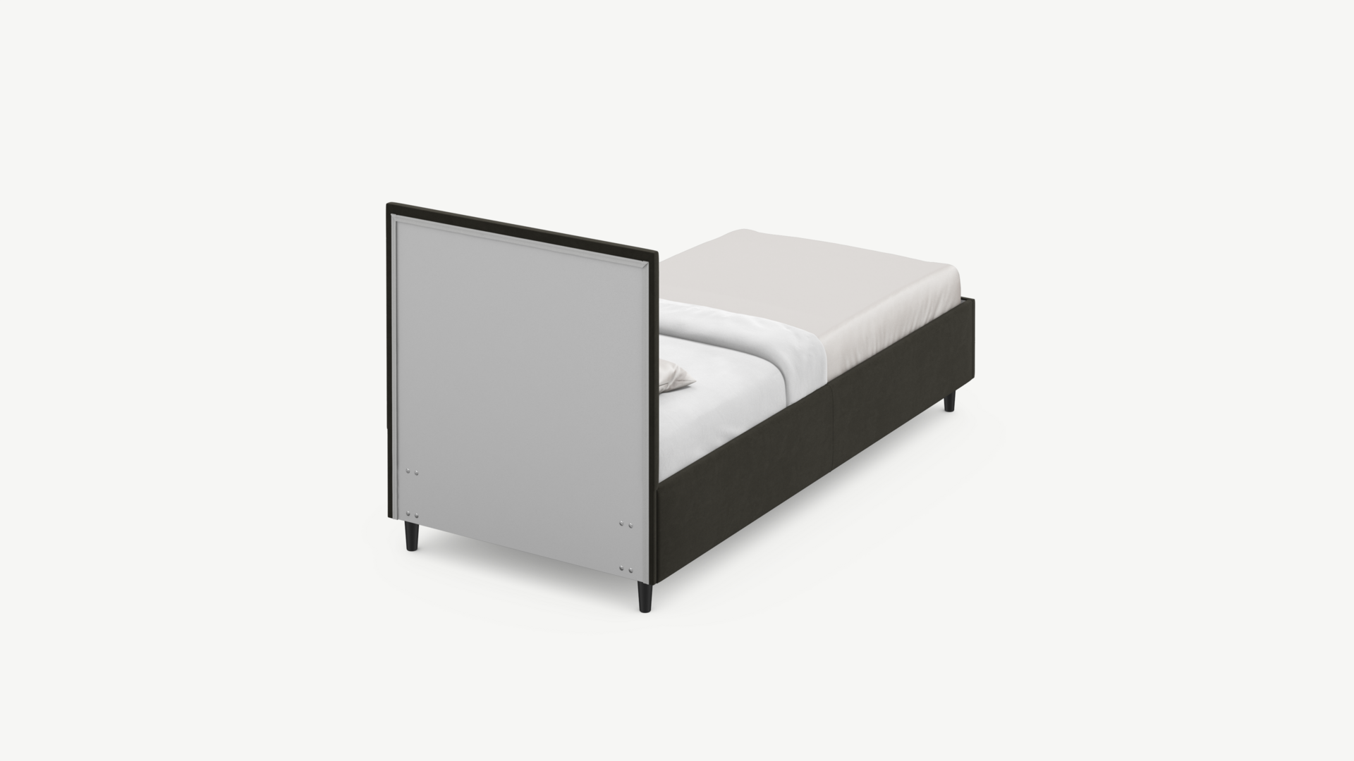 Стежка помещена в центр изголовья и обрамлена, словно картина. Объемные царги завершают цельную фигуру кровати и становятся гармоничным дополнением ее образа.