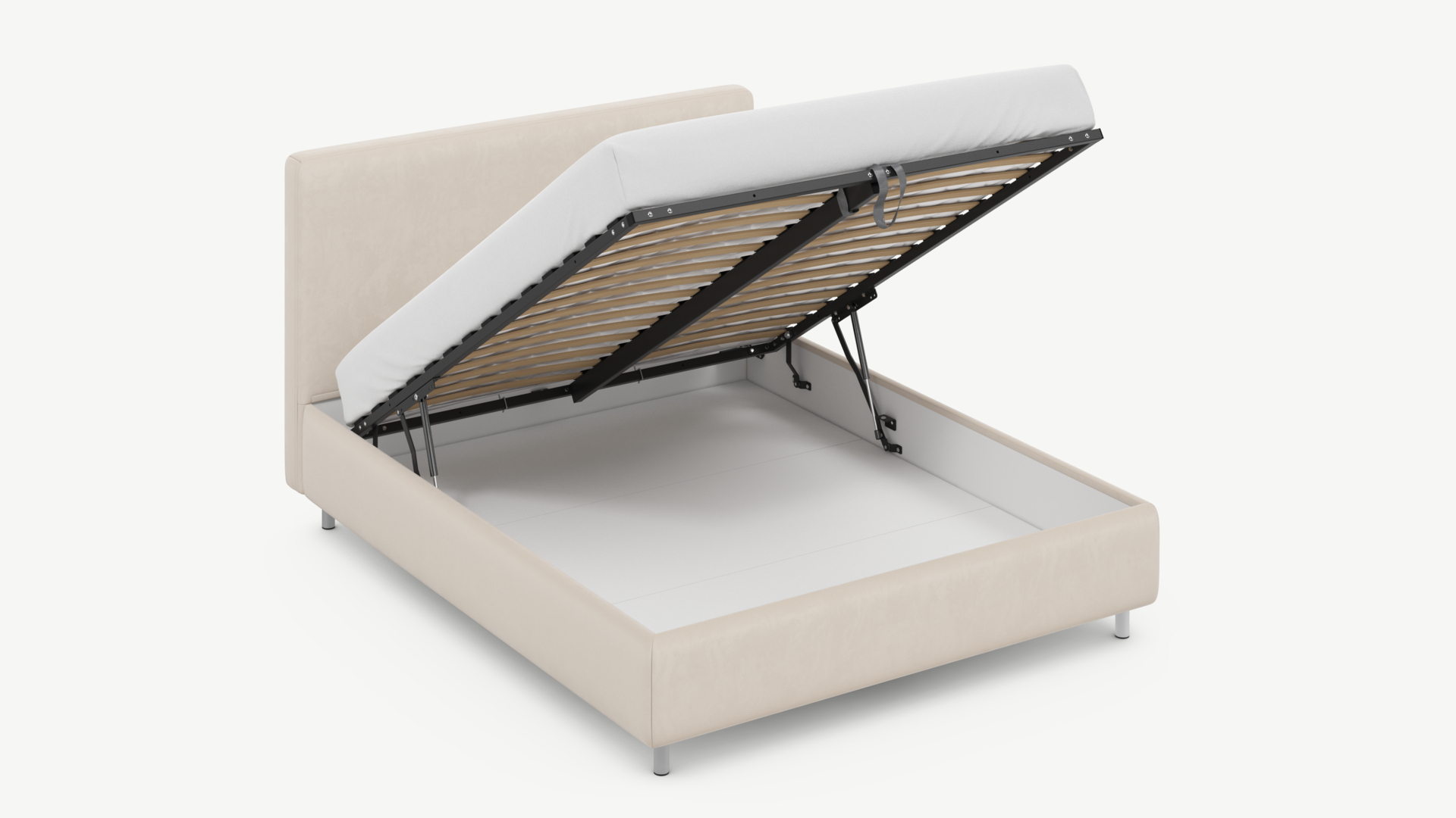 • Скрытая под основанием вместительная емкость без внутренних перегородок позволяет использовать всю площадь подкроватного пространства для хранения вещей.
