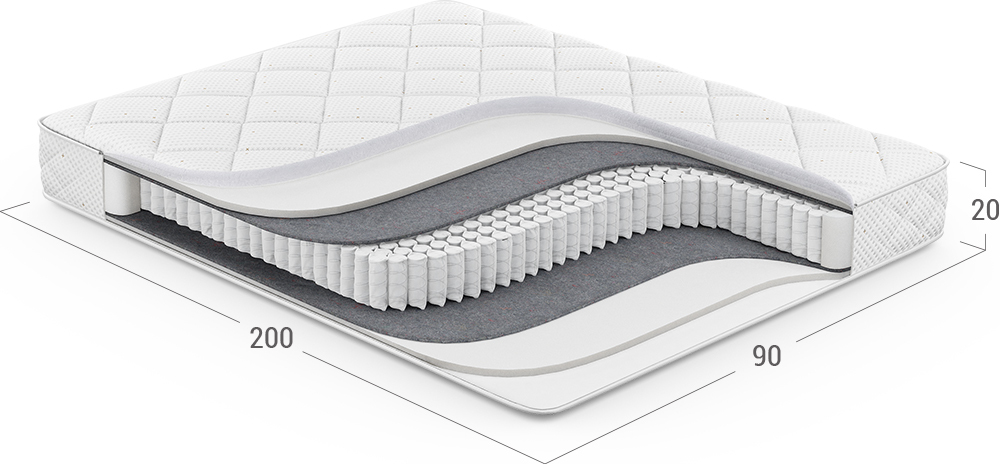 Надежно изолирует комфортные слои от соприкосновения с пружинным блоком и защищает материалы наполнения матраса от износа.