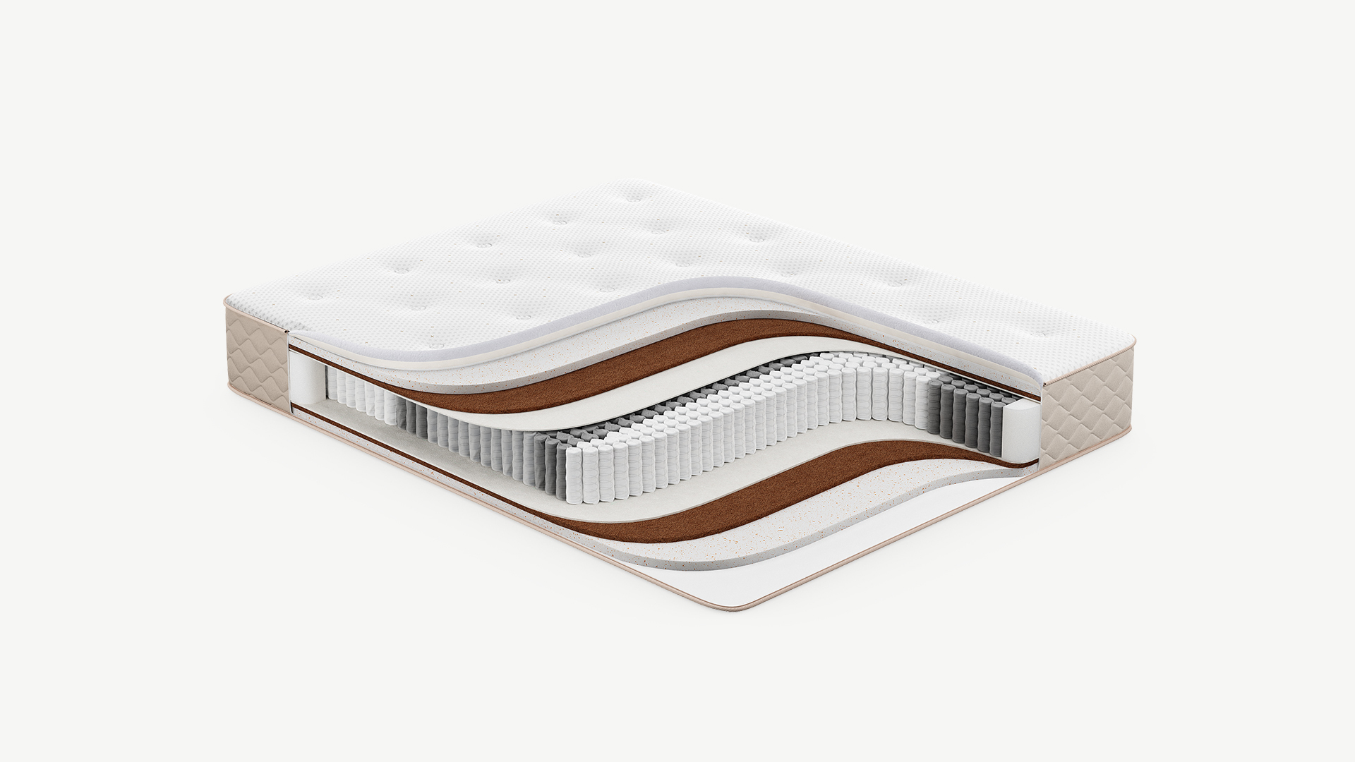 Надежно изолирует комфортные слои от соприкосновения с пружинным блоком и защищает материалы наполнения матраса от износа.