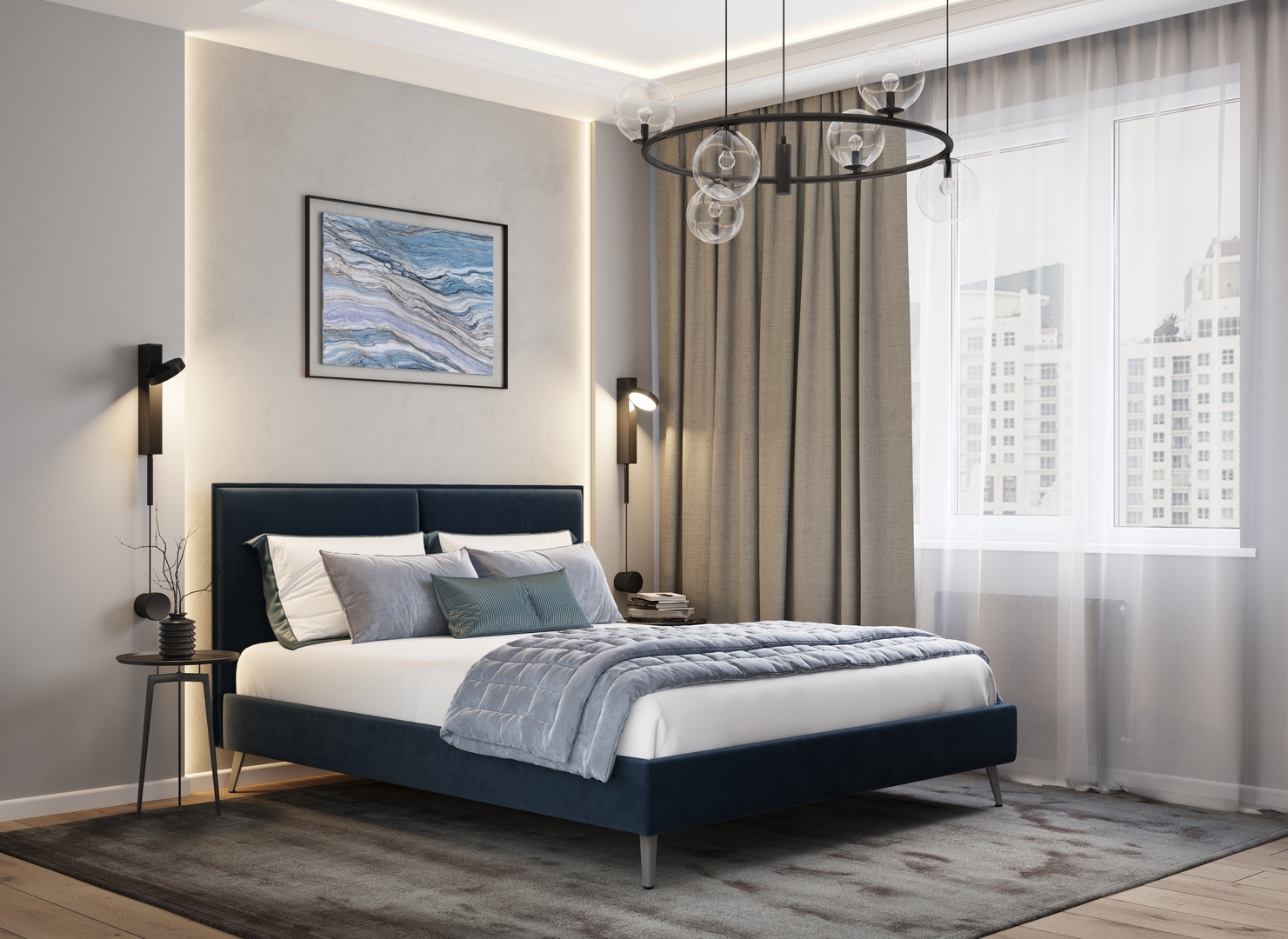 Самая клиентоориентированная компания! Заказали кровать в дизайнерский интерьер. По проекту нужна была кровать в черном цвете. Во многих магазинах черный был недостаточно насыщен, поэтому мы искали долго, пока не пришли в Moon. Менеджер принесла несколько палитр с цветами и мы нашли свой идеальный черный! Такой же как в нашем проекте! Черный велюр, нежный бархатный, тактильно приятный! В этой кровати есть возможность менять глубину рамы. Мы выбрали высокий матрас, но он органично смотрится, не перекрывает изголовье.