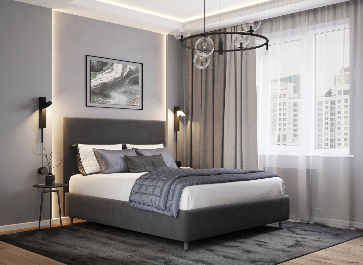 Разнообразие цветовой палитры позволит подобрать желаемый оттенок обивочной ткани. Использование светлых цветов поддержит настроение стиля «Сканди». Приглушенные насыщенные оттенки оформят кровать в стиле «Лофт». Нейтральные оттенки в цвет интерьера обыграют спальню в Современном стиле.